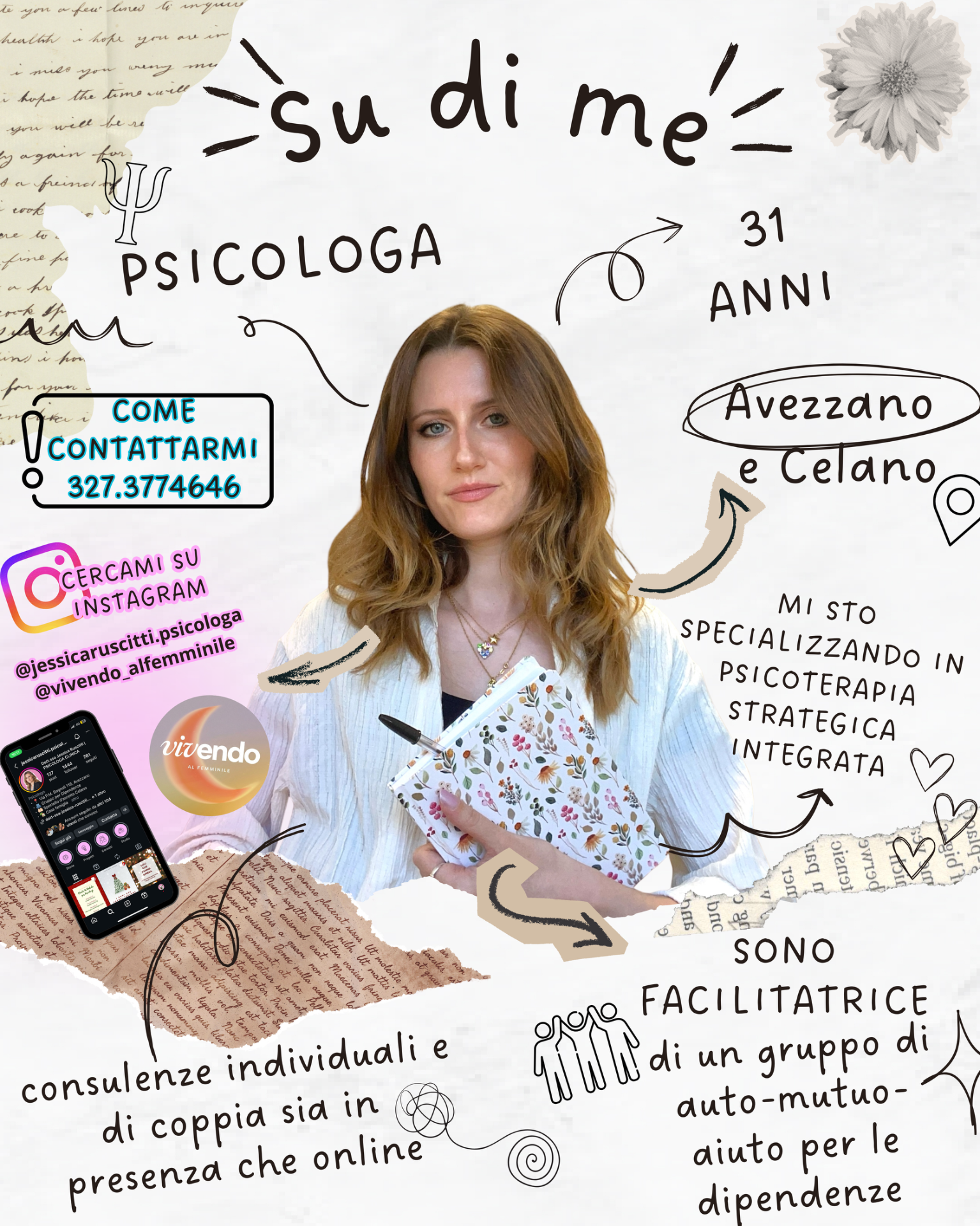 Infine sono co-fondatrice della pagina instagram @vivendo_alfemminile, la quale affronta tutto ciò che riguarda l'Endometriosi e più in generale il benessere femminile.